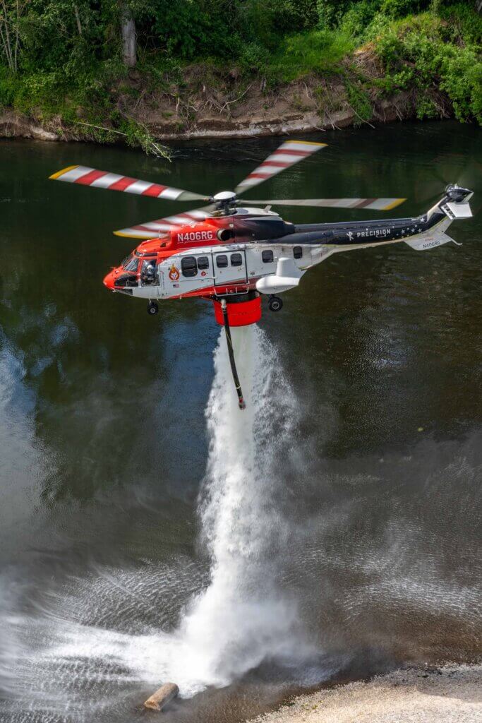 “We use a programmable logic controller, a computer system that drives the tanks so you can dial in coverage and flow rates into the tanks, to control the drop pattern for what agencies require,” said Schellaars, adding that Helitak tanks have recently achieved U.S. certification on the Sikorsky S-92, Airbus Helicopters H125, and Boeing CH-47 Chinook helicopters.