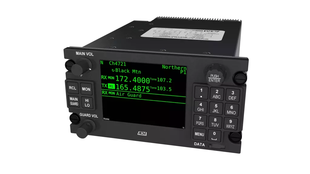 Main and guard capability is facilitated via a software-defined VHF-FM module grouping on the front panel of the radio.
