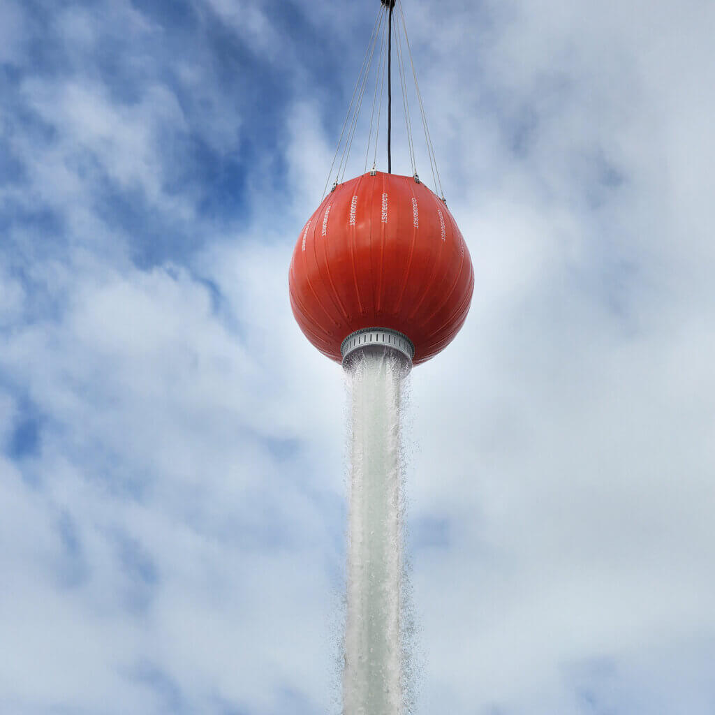 A key benefit of the Cloudburst is its 16-inch valve which, when paired with its collapsibility, allows for it to fit in standard cargo baskets for rapid transport between fires.