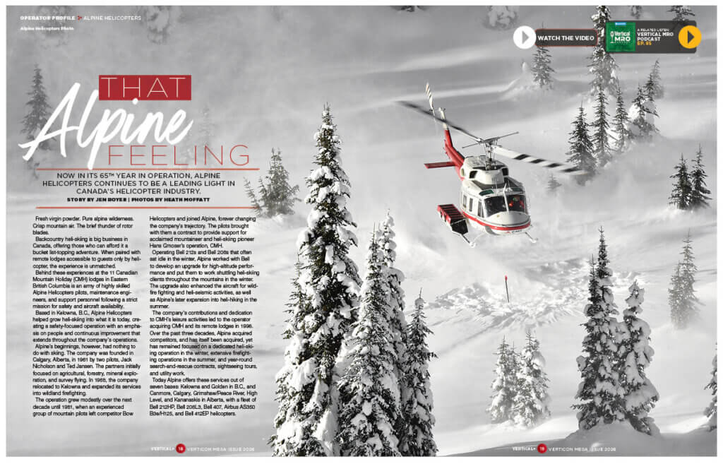 - The Alpine Feeling – Go behind the scenes with heli-skiing and firefighting specialist Alpine Helicopters.