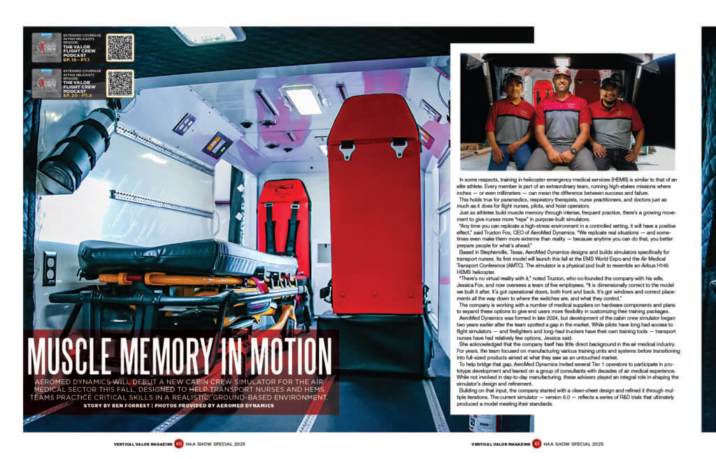 - Muscle Memory in Motion – AeroMed Dynamics unveils a first-of-its-kind crew simulator, giving nurses and HEMS teams a realistic way to hone lifesaving skills on the ground.