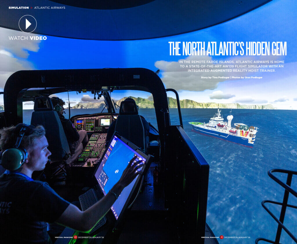 • Atlantic Airways shows us its AW139 flight simulator with integrated AR hoist trainer.