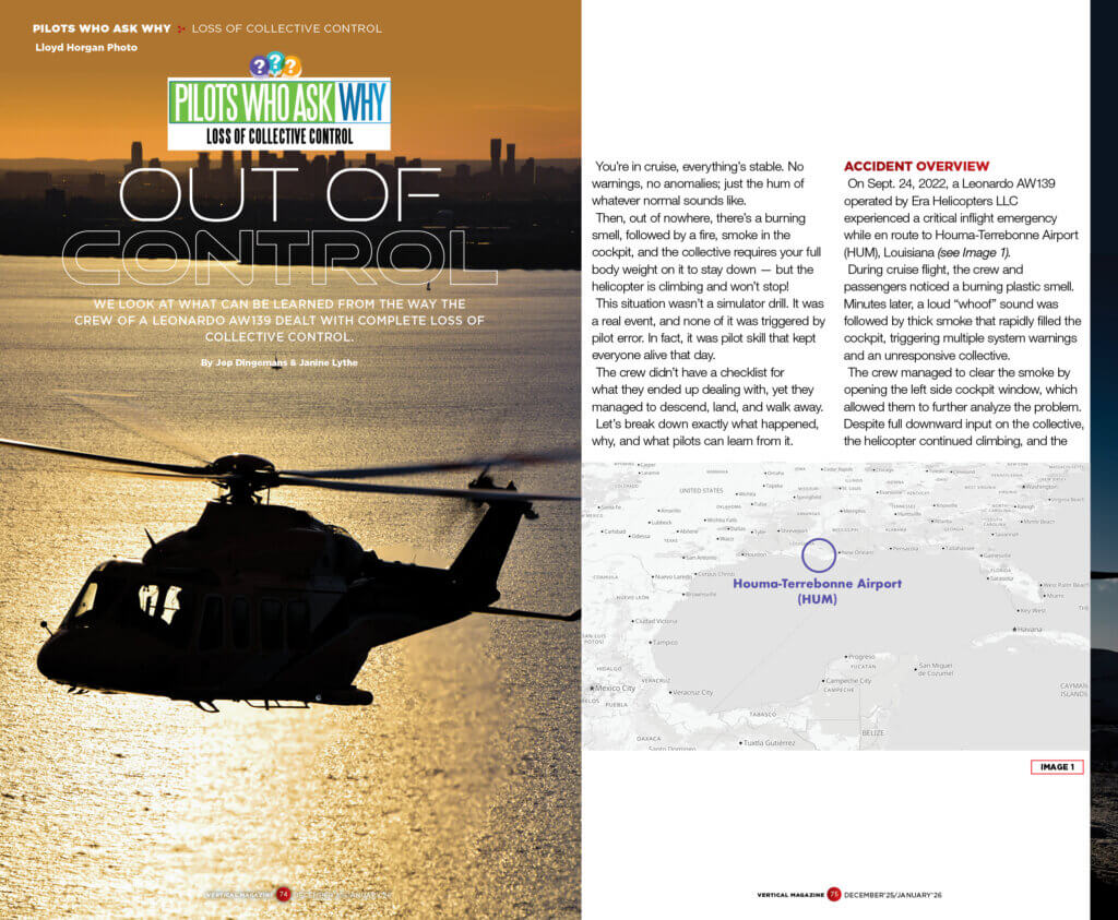 • How the crew of an AW139 dealt with complete loss of collective control.