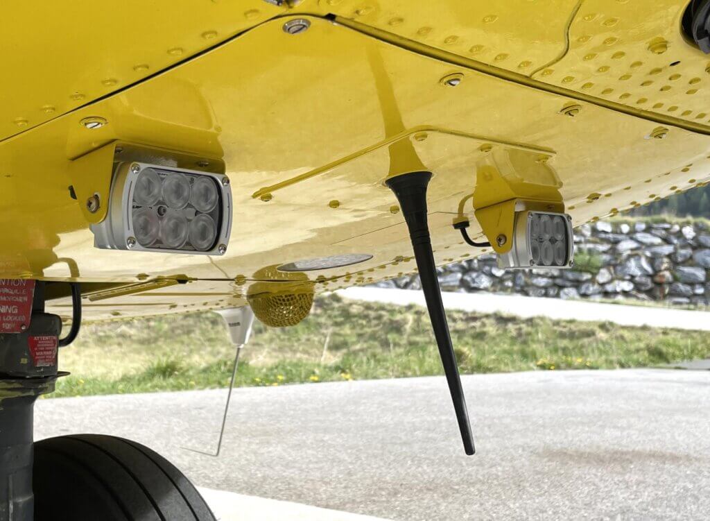 The lights are connected to the electrical circuit and can be controlled via a toggle switch in the cockpit, allowing the pilot to switch between the “On,” “Off,” and “Pulse” modes.